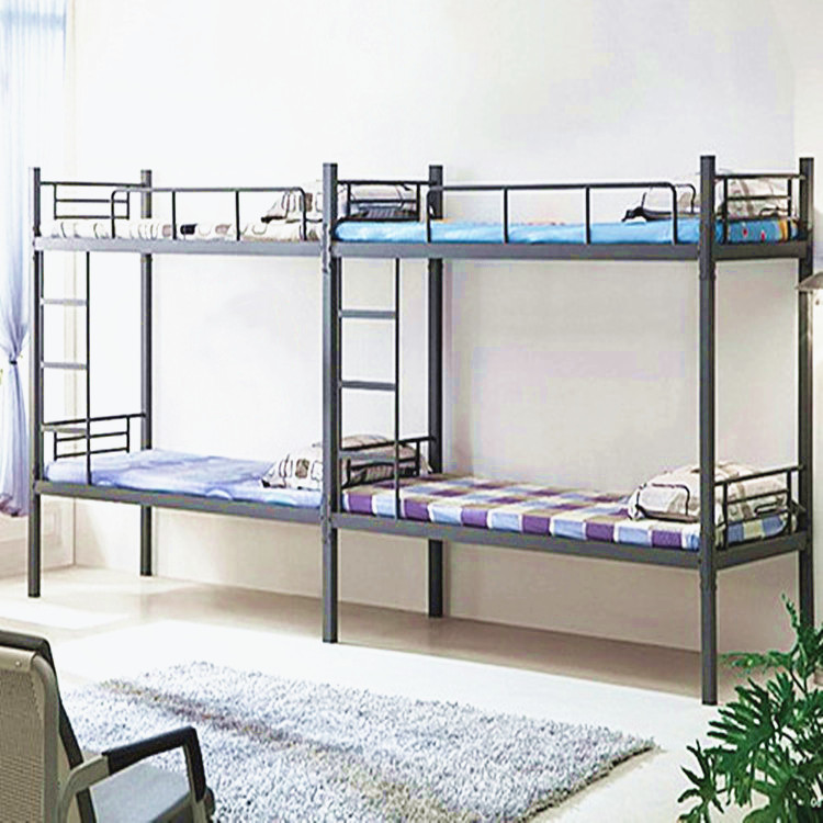 两连体上下铺床这些宿舍床都有不少的宿舍有摆放使用,像学校宿舍,员工宿舍等都是有使用的。上下铺床的床架由1.2mm厚的方管所制造,床架坚固耐用更厚实,不易损坏变形。